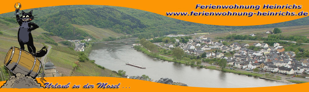Wohnen in einer traumhaften Landschaft, das ist Urlaub bei uns in Zell-Kaimt an der Mosel - Urlaub für Jung und Alt, für Wanderer, Radfahrer, Angler, Wassersportler, Inline Skater und Weinliebhaber und solche, die es werden wollen.